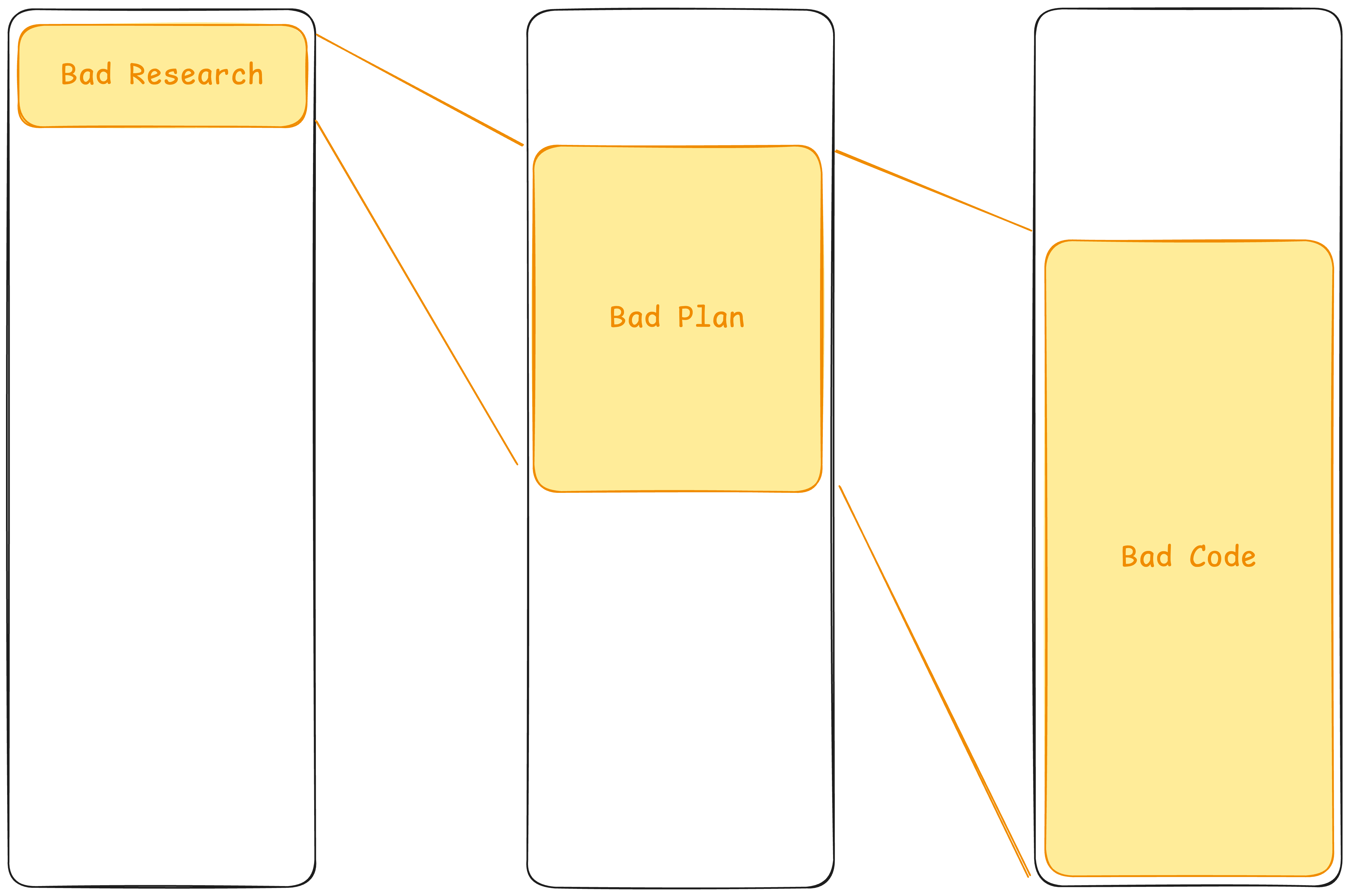 Each phase constrains the next one. Research prevents the agent from hallucinating context. Proposals prevent premature commitment. The plan prevents scope creep. Implementation stays focused. Review catches what slipped through.